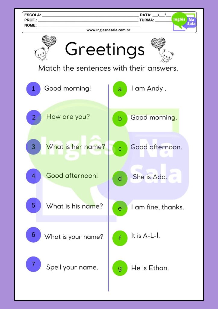 Atividades de Inglês sobre Greetings